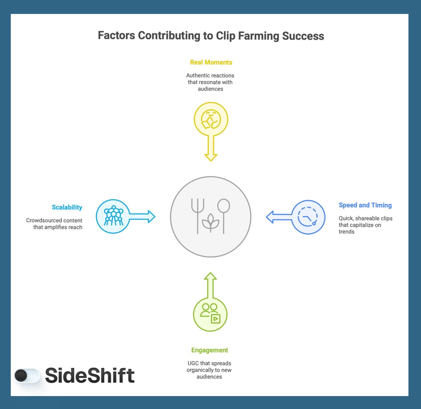 So, what exactly is clip farming, why is it controversial, and how can creators and brands use it ethically to grow their audiences? Let’s break it down and explore how platforms like SideShift help creators scale short-form content responsibly for brands looking to reach wider audiences quickly and cost-effectively.