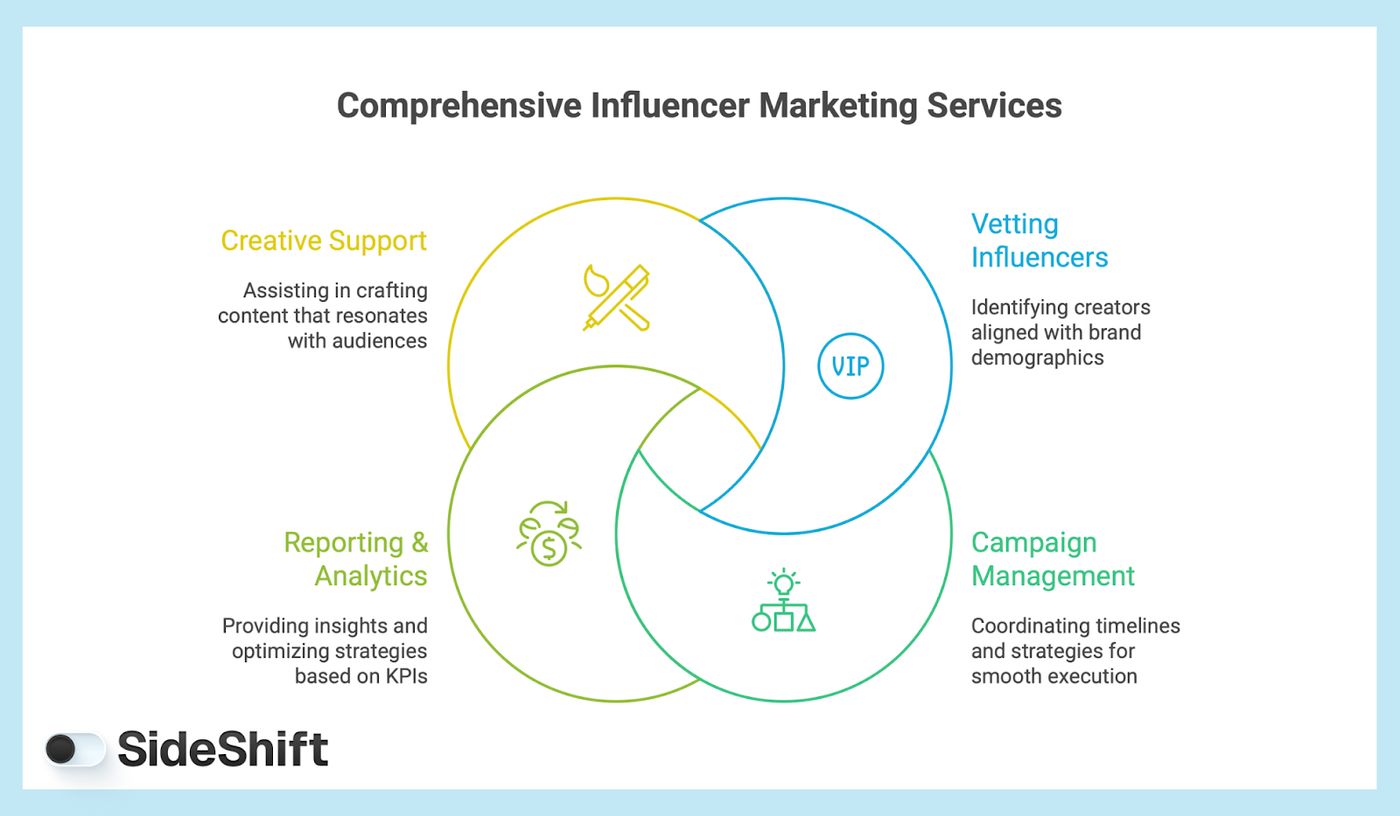 At SideShift, we help creators and brands come together for fun and creative influencer marketing campaigns that drive real engagement and measurable ROI. In our experience, influencer marketing isn’t optional in 2025. It’s the most efficient and effective hybrid push-and-pull marketing strategy that's redefining how businesses connect with a wide range of audiences and highly targeted customers.