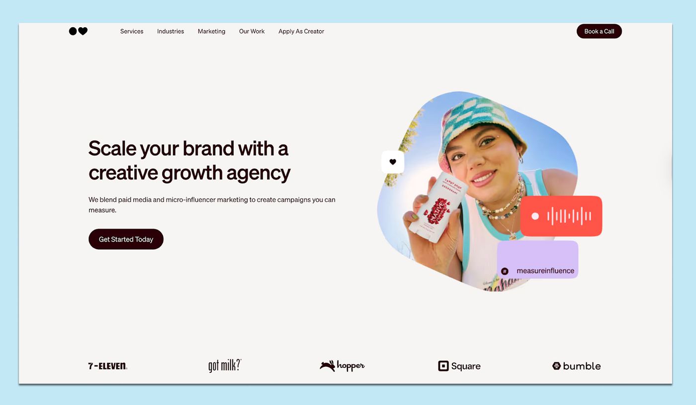 inBeat is a UGC agency that emphasizes working with the top 2% of social media creators. Instead of leaving brands to sift through endless talent lists, inBeat’s agency approach assembles creator teams tailored to each campaign, ensuring every piece of content is both authentic and performance-ready.