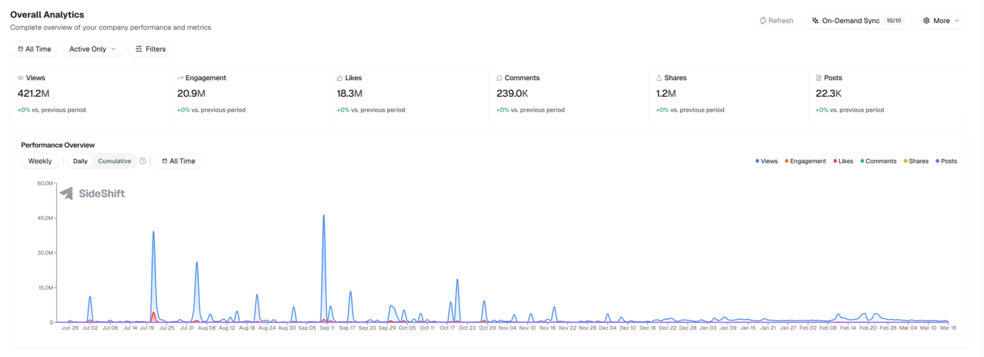 - Press-driven spikes: Growth came in waves—not from consistent creator-led content.